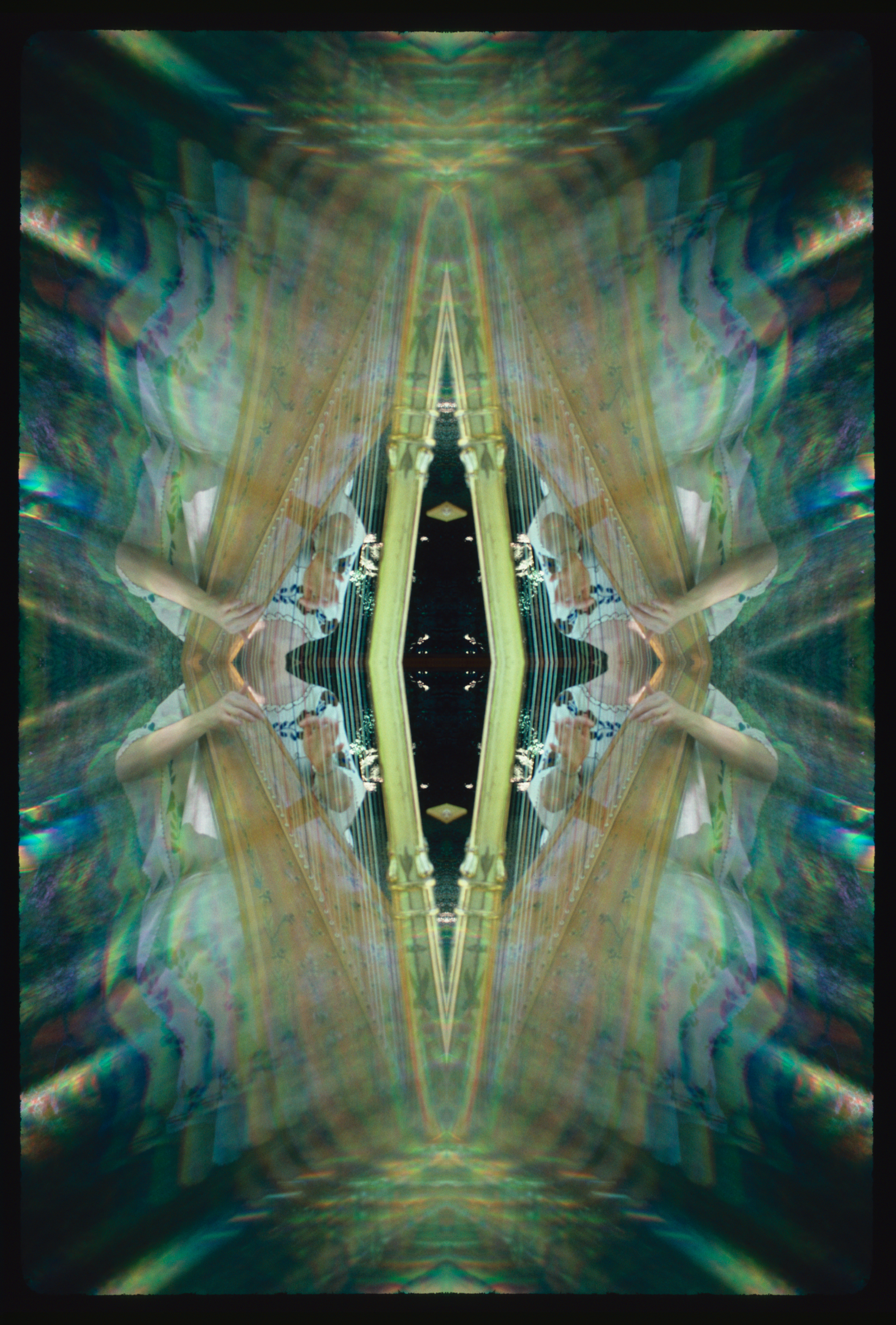 The use of digital processes expands, doubles, extracts energy & optical structures from the original slide, releasing it in in new rhythms & gestalts.